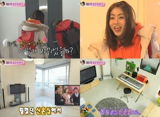 강소라는 하트배게, 요리책, 커플 곰인형등을 꺼내놓으며 집안을 꾸밀 생각에 설레는 모습을 보였다. 특히 강소라는 다산을 상징하는 인형까지 챙겨와 이특을 놀라게 하기도 했다.