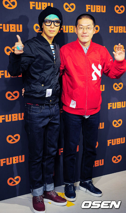 12일 오후 서울 중구 명동 후부 명동 스토어에서 열린 포스트 힙합 감성 스트리트 캐주얼 후부(FUBU)의 '2TOP Jeans' 트라이얼 캠페인에 참석한 뮤지션 탑과 디자이너 서상영이 포토월에서 포즈를 취하고 있다.
