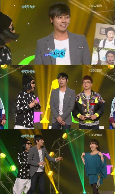곧이어 최상학이 무대에 등장하자 황현희는 "TV를 보고 계신 PD분들에게 연기를 선보여 달라"고 주문했고 최상학은 "옛날에는 두들겨 맞는 연기를 주로 했다"는 말로 폭소탄을 터뜨렸다. 이에 안연홍이 바로 "야! 최상학!"을 외치며 개콘 무대로 올라섰고, 최상학에게 무차별 폭력을 행사해 객석을 가득 채운 관객들로부터 웃음을 자아내게 했다.