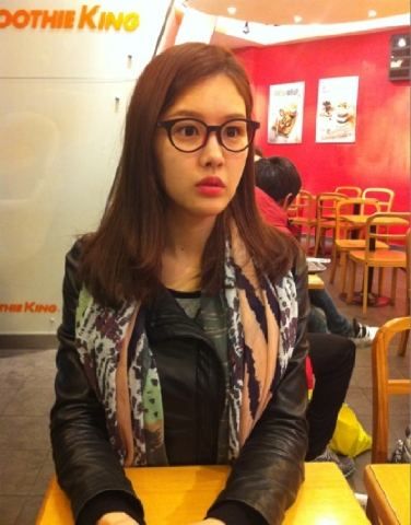 사진 속 박은지는 깜짝 놀란 표정으로 눈을 동그랗게 뜨고 한 곳을 응시하고 있다. 동그란 뿔테 안경에 검은 가죽재킷, 스카프를 매치해 특유의 패션센스를 뽐내기도 했다.
