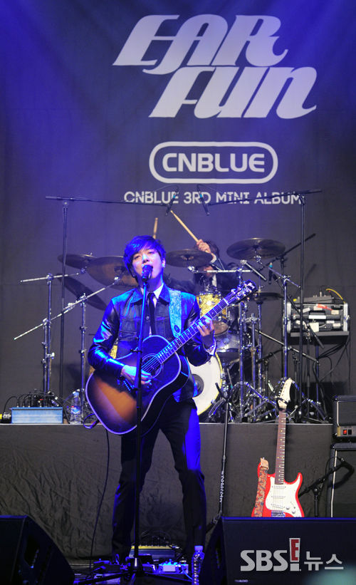 [SBS SBS연예뉴스ㅣ 김현철 기자] 그룹 씨엔블루(CNBLUE)가 26일 서울 양재 엘타워에서 열린 세 번째 컴백 미니앨범 '이어 펀(EAR FUN)' 쇼케이스에서 열창을 하고 있다.