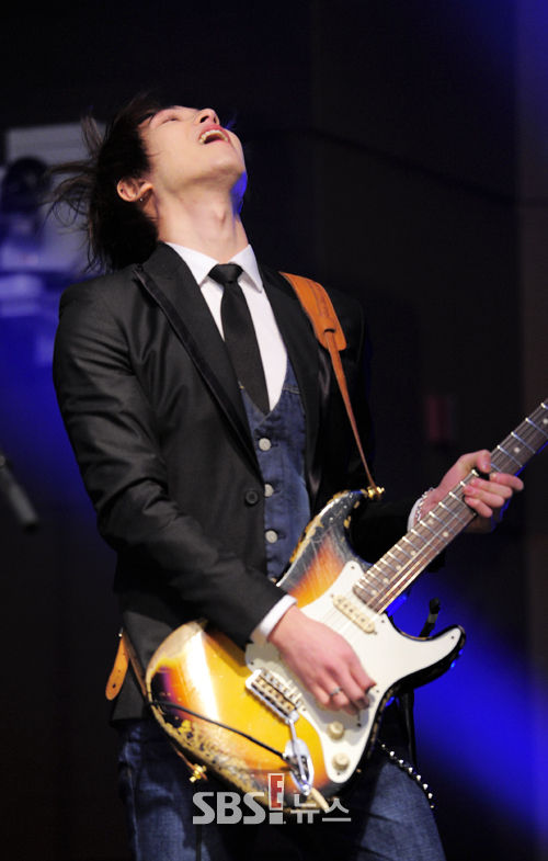 [SBS SBS연예뉴스ㅣ 김현철 기자] 그룹 씨엔블루(CNBLUE) 이종현이 26일 서울 양재 엘타워에서 열린 세 번째 컴백 미니앨범 '이어 펀(EAR FUN)' 쇼케이스에서 연주를 하고 있다.