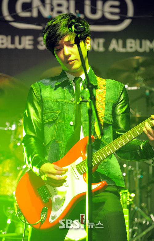 [SBS SBS연예뉴스ㅣ 김현철 기자] 그룹 씨엔블루(CNBLUE) 정용화가 26일 서울 양재 엘타워에서 열린 세 번째 컴백 미니앨범 '이어 펀(EAR FUN)' 쇼케이스에서 연주를 하고 있다.