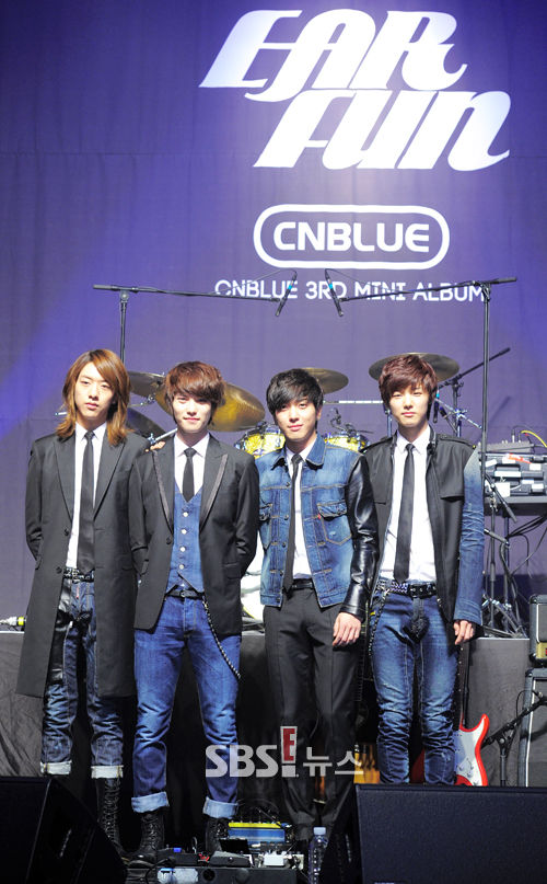씨엔블루는 26일 낮 12시 서울 서초구 양재동 엘타워에서 세 번째 컴백 미니앨범 '이어 펀(EAR FUN)' 쇼케이스를 열고 수록곡 '아직 사랑한다' '인 마이 헤드' '헤이 유'를 선보여 뜨거운 박수를 받았다.