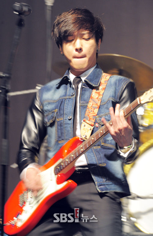 [SBS SBS연예뉴스ㅣ 김현철 기자] 그룹 씨엔블루(CNBLUE) 정용화가 26일 서울 양재 엘타워에서 열린 세 번째 컴백 미니앨범 '이어 펀(EAR FUN)' 쇼케이스에서 연주를 하고 있다.