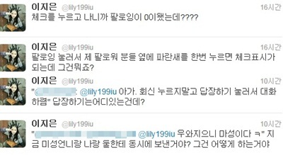 아이유는 지난 26일, 처음으로 트위터 계정을 개설했다. 이후 자신의 트위터에 "체크표시는 뭐죠?" 등의 트위터 활동에 대한 궁금증의 글들을 게재했다.