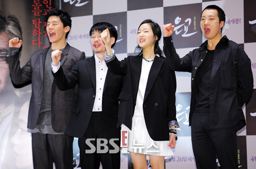 [SBS SBS연예뉴스 l 김현철 기자] 배우 김무열 정지우감독 김고은 박해일이 27일 오전 서울 광진구 자양동 롯데 시네마에서 열린 영화 '은교' 제작보고회에서 포즈를 취하고 있다.