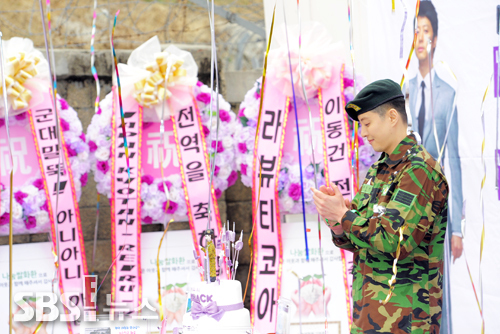 [SBS SBS연예뉴스 ㅣ 김현철 기자] 배우 이동건이 28일 오전 서울 용산구 국방부 국방홍보지원단에서 군 생활을 마치고 만기 전역했다.
