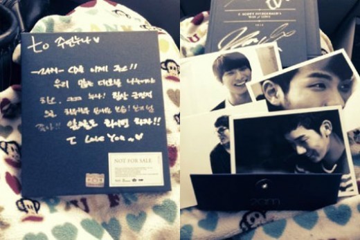 사진 속 음반에는 조권이 직접 적은 메시지가 눈에 띈다. 조권은 "2AM CD를 이제 주오! 우리 많은 대화를 나눠야 하오. 그리고 누나! 항상 긍정적으로 하루하루 보내는 모습! 보기 너무 좋아! 앞으로도 화이팅 하자! 아이 러브 유(I Love You)"라고 적었다.