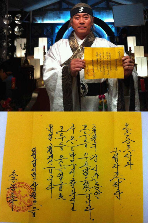 노란 종이 위에 “3개월의 긴 시간동안 모두들 수고 많으셨습니다”라고 쓴 이병준의 편지는 수준급의 필체와 마지막에 쓰여진 '도롱뇽 도사'라는 이름 및 낙관이 극중 도롱뇽 도사가 실제로 작성한 듯한 느낌을 선사한다.