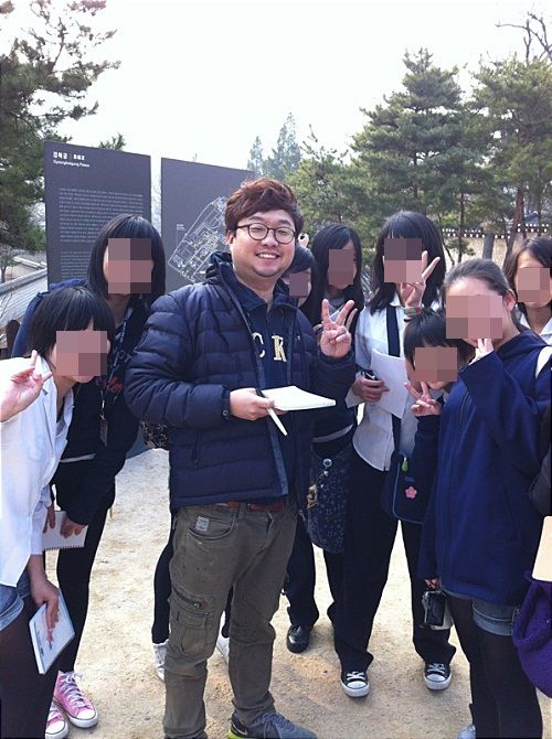 사진 속 박휘순은 경복궁에서 중국 여자 관광객들에 둘러싸여 행복한 미소를 짓고 있다.