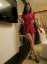 사진 속 이영은은 다리가 훤히 드러나는 빨간색 미니드레스를 입고 있다.
