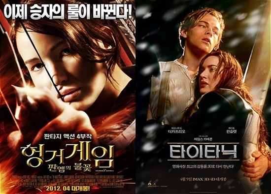 미국 2주 연속 박스오피스 1위를 점령한 판타지 액션 4부작의 서막 '헝거게임 : 판엠의 불꽃'(이하 헝거게임)과 14년 만에 다시 개봉한 '타이타닉 3D'가 나란히 5일 개봉한다.