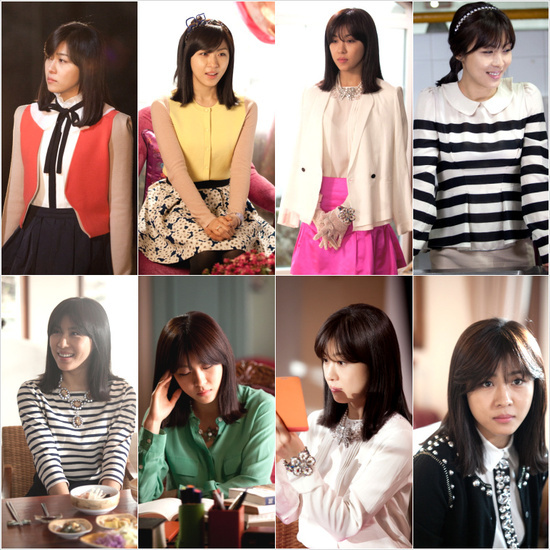 하지원은 고급스러우면서도 사랑스러운 왕제비 스타일을 완성하기 위해 샛노란 니트에 하늘하늘한 스커트로 화사함을 한껏 불어넣었다. 또 리본 장식이 달린 블라우스와 미니 플리츠스커트를 입어 귀여움을 강조했다.