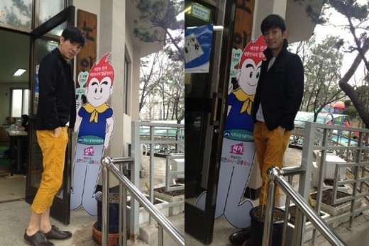 공개된 사진 속에는 윤건이 검은 재킷과 짙은 노란 바지를 입고 모델 같은 분위기를 뽐내고 있다. 이어 선거장 앞 마스코트의 옆에 서서 미소 짓고 있다.