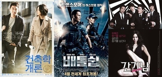 지난 달 22일 개봉한 한가인, 엄태웅, 이제훈, 수지 주연 '건축학개론'은 이날 전국 16만 3468명을 더해 누적관객수 262만 3961명을 기록, 지난 일요일(9일) 보다 더 큰 흥행력을 보여줬으며, 3위를 장식한 박희순 박시연 주연 '간기남'은 전국 10만 3480명을 모으며 상쾌한 출발을 알렸다.