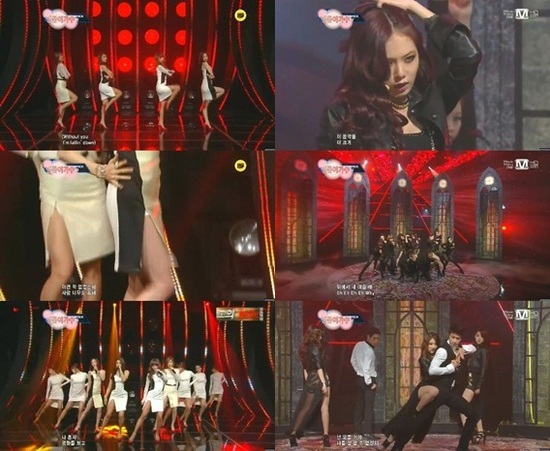 포미닛과 씨스타는 오늘 무대에서 각선미 대결을 제대로 펼쳤다. 씨스타는 하반신의 옆라인을 과감하게 드러냈으며 포미닛은 하의 실종 핫팬츠로 쭉 뻗은 다리를 과시했다. 씨스타는 다리를 이용한 요염한 안무로, 포미닛은 강렬한 눈빛으로 각각 남심을 사로잡았다.