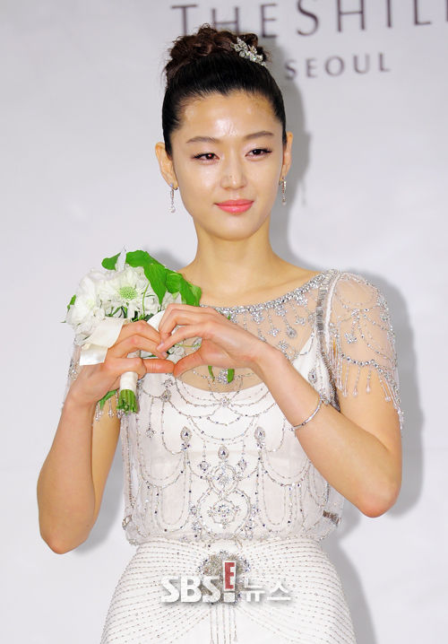 [SBS SBS연예뉴스 l 김현철 기자] 배우 전지현이 13일 오후 서울 장충동 신라호텔에서 열린 최준혁씨와 결혼식 전 기자회견에서 포즈를 취하고 있다.