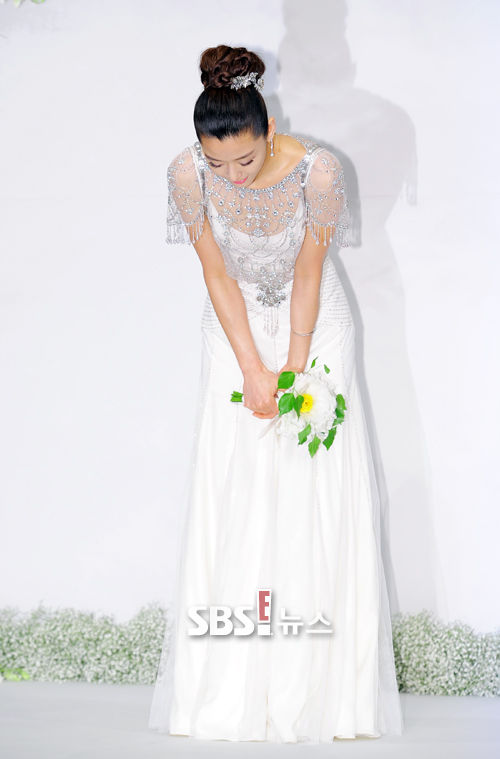 [SBS SBS연예뉴스 l 김현철 기자] 배우 전지현이 13일 오후 서울 장충동 신라호텔에서 열린 최준혁씨와 결혼식 전 기자회견에서 인사를 하고 있다.