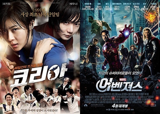 1991년 결성됐던 사상 최초 남북 단일 탁구 국가대표팀의 실화를 영화화한 작품 '코리아'와 미국을 대표하는 마블 슈퍼히어로들이 총출동하는 영화 '어벤저스'가 그 주인공.