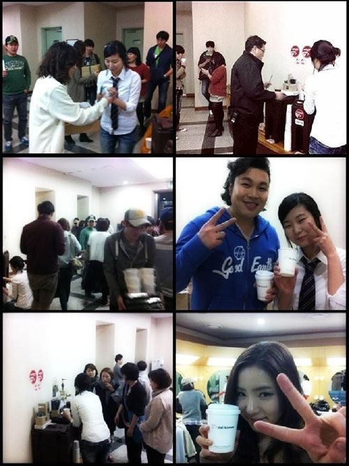 지난 12일 신세경의 팬들은 100인분의 도시락과 간식을 준비해 배우와 전 스텝들에게 전달, 정성을 담아 선물했다. 뿐만 아니라 신세경이 광고 모델로 있는 '달.콤커피' 에서는 커피를 적극 지원해 전 스텝들의 식사 후 티타임까지 책임졌다.