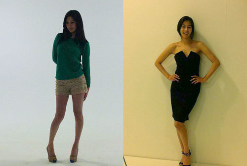 특히 이 사진은 밝은 배경에서 다소 어둡게 찍힌 탓에 장신영의 길고 가는 팔과 다리의 실루엣이 더욱 부각돼 있어 무보정임이 믿기지 않는 늘씬한 몸매가 시선을 집중시킨다.