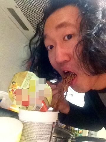 개그맨 김경진이 짜장 컵라면을 먹으며 찍은 코믹 셀카를 공개했다.