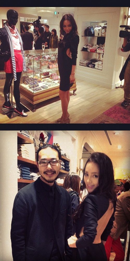 아유미는 지난 16일 오후 자신의 트위터에 "마음에 드는 원피스 입고, 신난다(웃음)(おに入りワンピス着て、ノリノリ。笑)"에 이어 "타테하나 씨와(with mr.TATEHANAっち)"라는 글과 함께 두 장의 사진을 게재했다.