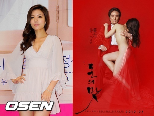이번에 공개된 이미지에는 배우 백윤식이 붉은 수트 차림으로 전라의 여인을 끌어안은 채 강렬한 눈빛을 선보이고 있다.