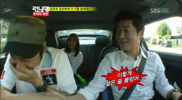 이광수는 레이스를 시작한지 얼마 되지 않아 김상중-장신영 팀에 인질로 잡혔다. 세 사람은 함께 차를 타고 이동했고, 이 과정 중에 85년생 이광수는 84년생 장신영을 “선배님”이라 불렀다.