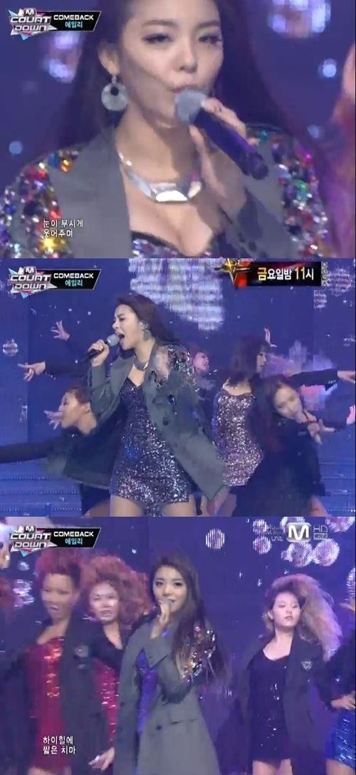 에일리는 18일 오후 6시 방송된 엠넷 '엠카운트다운'에 출연해 신곡 '보여줄게'로 풍성한 성량을 뽐냈다.
