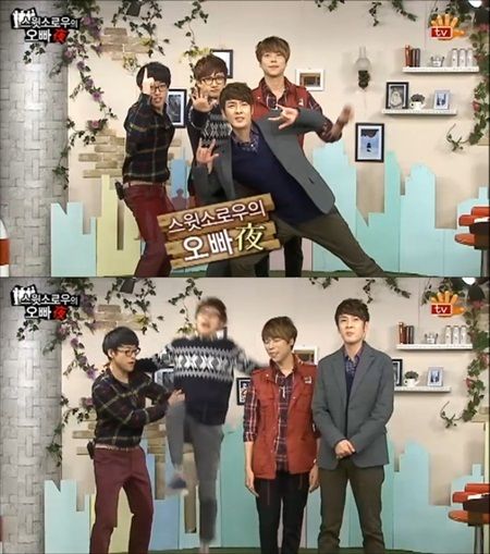 교통사고를 당한 스윗소로우 멤버 송우진과 김연우가 방송에 복귀했다.