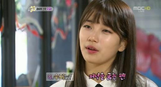 이날 방송에서 수지는 "다이어트 비법이 있느냐?"라는 질문에 "저녁을 안 먹는 정도"라고 답하며 "라면 같은 여자가 되고 싶다"고 밝혔다.