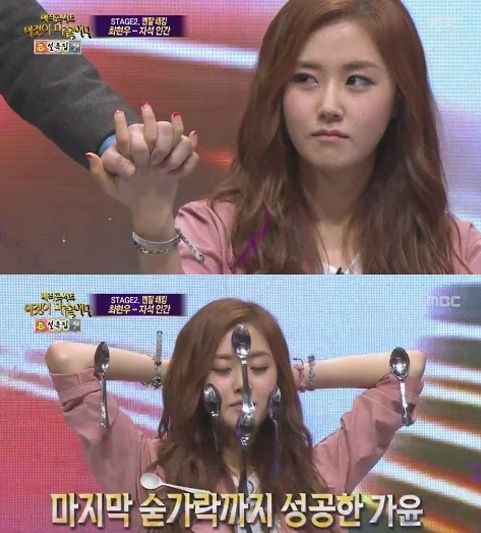 최현우는 허가윤의 몸에 총 6개의 숟가락을 붙였고 "허가윤은 모든 인기를 흡수할 것이다"라며 마술을 끝마쳤다.