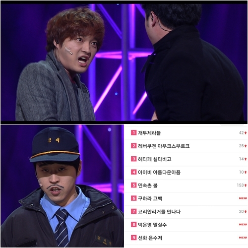 지난 16일 밤 방송된 '개그투나잇'에서 '개투제라블'이 첫 공개됐다. 개그맨 남호연, 김정환, 최백선이 선보인 '개투제라블'은 방송이후 주요 포털사이트에서 검색어 1위에 오르고 SNS에서 뜨거운 반응을 얻었다.