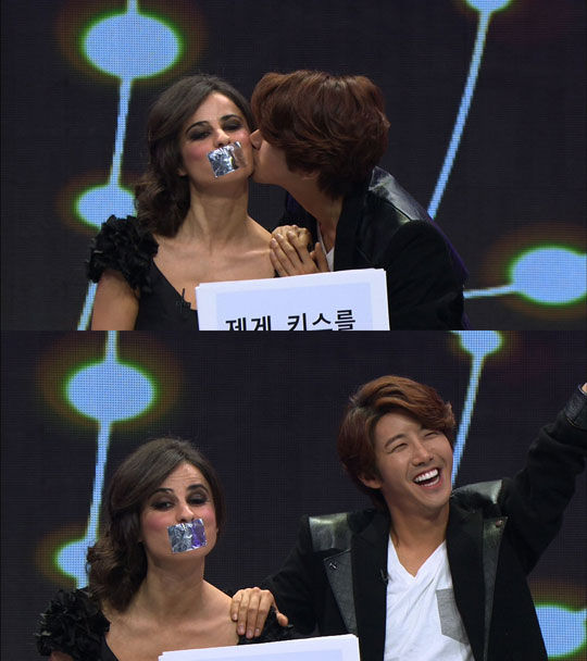 이후 '나에게 키스 해 달라'는 스케치북의 글씨가 나오자 다른 남자 출연자들이 머뭇거린 것과 달리 광희는 적극적으로 앞에 나서 기습키스를 해 녹화장을 술렁이게 했다.