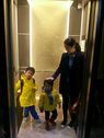 특히 장진 아내의 단아하고 지적진 외모와 아들 둘의 노란색 우비 코디가 눈길을 끈다.