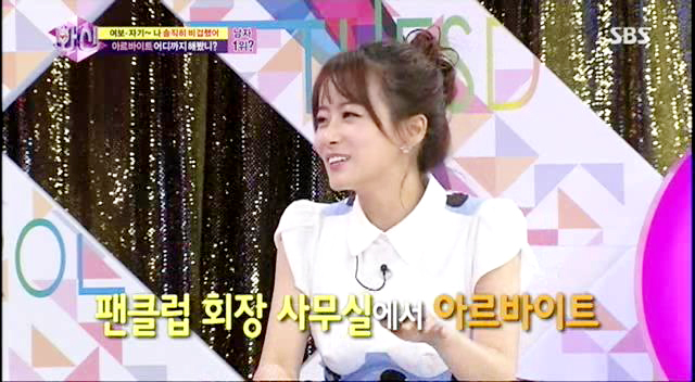 그녀는 커피숍 뿐 아니라 돼지갈비집에서도 아르바이트를 했었고 두꺼운 안경과 초라한 옷을 입어 사람들이 못알아보게 했다고 말했다.