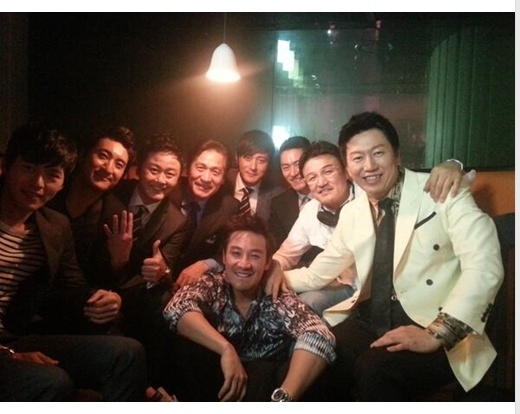 13일 김수로는 자신의 트위터를 통해 "'톱스타' 촬영현장에 찾아 왔었던 나의 선후배 배우님들~박중훈 감독님께 힘을 실어 드리러 온 의리~^^"라는 글과 함께 한 장의 사진을 게재했다.