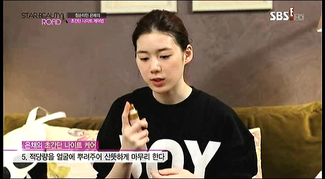 마지막으로 정은채는 기초 마지막 단계로 미스트를 뿌리고 흡수시킨 뒤 잠자리에 든다고 전했다.