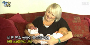 최근 3차례 연속으로 쌍둥이를 낳은 영국 스코틀랜드 40대 여성이 화제를 모으고 있다.