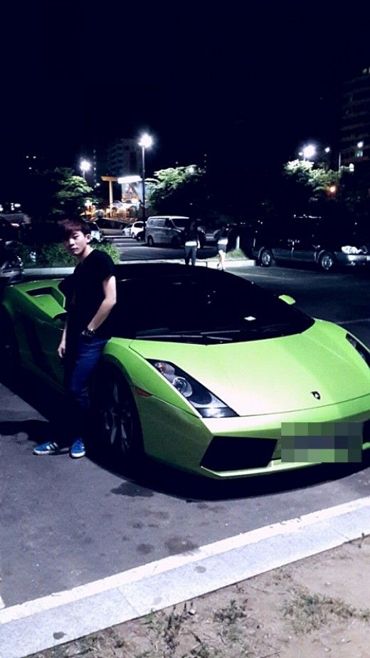 그가 공개한 사진은 녹색빛의 최고급 스포츠카 앞에서 기대어 포즈를 취하고 있는 백청강의 모습이 담겨있다.
