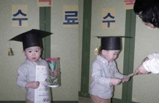 공개된 3살 때 윤후 사진 속에는 윤후가 학사모를 쓴 채 수료증을 받는 모습이 담겨있다.