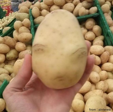 그런데 이 감자의 표면이 마치 외계인처럼 옆으로 벌어진 눈매와 그와 대비해 작은 입을 가진 얼굴처럼 보여 폭소를 자아낸다.
