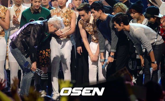 지드래곤은 이날 1위로 발표되자 함께 무대에 오른 후배들에게 허리를 90도로 굽혀 깍듯한 인사를 건넸다.