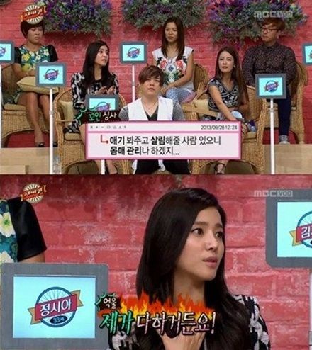 지난 28일 방송된 MBC '세바퀴'에 출연한 정시아는 육아로 인한 체력소모로 살이 찌지 않는 것에 대해 악플이 달려 괴롭다고 고백했다.