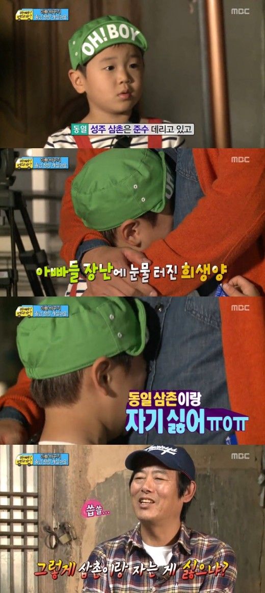 윤후의 눈물을 본 성동일은 "너 지금 삼촌 싫다는 거냐"고 묻자, 윤후는 눈물을 흘리면서도 다른 핑계를 대 웃음을 자아냈다.