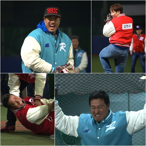 야구선수들의 깜짝 등장에 '런닝맨' 멤버들은 격하게 환영했다. 특히 류현진은 과거 한화이글스에서 함께 뛰며 자신의 공을 받았던 포수 출신 신경현을 보자 90도로 허리를 굽혀 인사하면서 예의를 표했다.