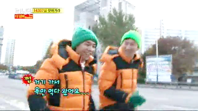 이승기와 이광수는 숫자 '14357'의 의미를 알아 내기 위해 동분서주 했다. 이승기는 특히 지나가는 여성을 향해 적극적으로 질문을 던졌다. 이에 이광수는 "누님들이랑 여행을 다녀오더니 여심을 공략하는구나"고 말했다.