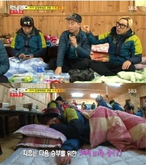 지난 9일 방송된 SBS '일요일이 좋다-런닝맨'(이하 '런닝맨')에서는 런닝맨 팀과 올스타 팀의 대결이 그려진 가운데, 런닝맨 팀이 릴레이 쇼트트랙 경기에서 올스타 팀에 승리한 후 휴식을 취했다.